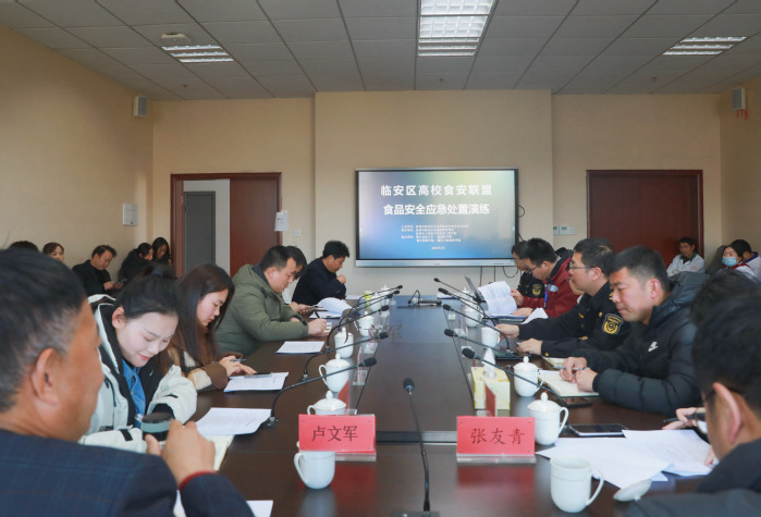 演练结束后,各参加演练单位进行了工作交流。张友青肯定了我院的食品安全应急处置能力,并提出各在临高校要加强与属地职能部门的沟通交流,通过开展形式多样的活动,共同维护校园食品安全。