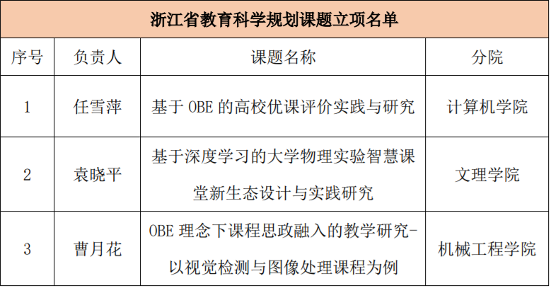近日,浙江省教育科学规划领导小组办公室发布《关于公布浙江省教育科学规划2024年度各类课题的通知》(浙教科规办〔2024〕02号),学院有3项年度一般规划课题获批立项。获批立项名单如下: