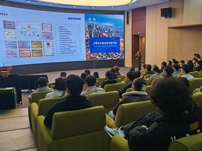 一行人首先来到西子电梯科技有限公司。在会议大厅,西子电梯的接待人员热情地为师生们讲解了西子电梯的企业文化、发展历程及行业地位。随后参观了西子电梯的生产车间。毕业生们通过实地参观,直观地了解了西子电梯的运营规模、生产工艺和工作环境,对电梯制造行业有了更为深刻的认识。