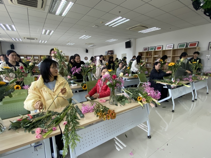 此次活动邀请了单坎捷老师现场授课,为大家详细讲解鲜花的基本常识、色彩搭配、保鲜方法以及插花技巧等知识。他以生动语言和耐心示范,让大家对插花艺术有了更深入的理解,大家争相展示自己的创意与技巧。花随纤指添春色,芬芳扑鼻寄廉心,花叶枝条在女教职工们的巧手中绽放出别样的光彩,每件插花作品都构思灵巧生动、色彩搭配协调、花束错落有致,充满了艺术感和浪漫感。大家的脸上都洋溢着幸福快乐的笑容,纷纷表示:插花活动温馨、浪漫、有意义,让大家在感受美、欣赏美、创造美的过程中,提升审美能力,感受清风徐来。