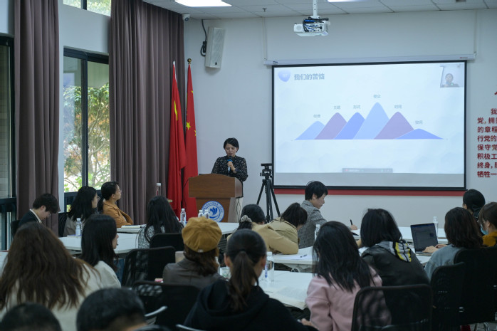 随后,“教学质量月”首场主题教学沙龙活动开启。陈溪源博士以“促进教学改革 助力教师发展——与教学实践共同体一起成长”为题带来了一场别开生面的讲座。陈老师讲述了自身参与学校教学实践共同体活动的经历、感受,以及收获的成长、经验,阐释了共同体对促进教学改革、带动教师发展的积极作用。她还分享了自身在主持推进教学实践共同体活动中遇到的诸如经费、选题、活动形式、受众、时间、空间等各类问题,以及如何成功破解这些难题的宝贵经验,为我院推进教师教学实践共同体建设打开了新思路。