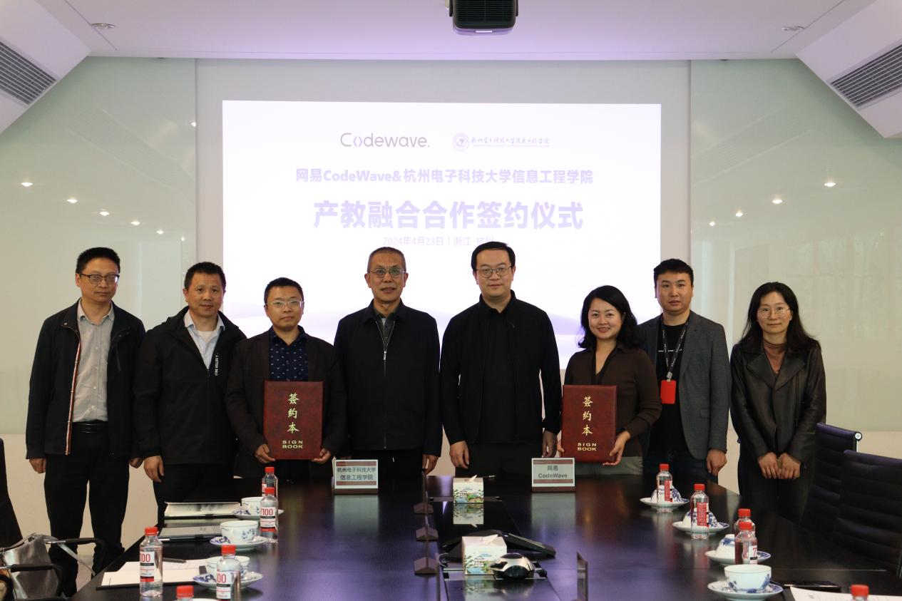 4月23日,开元(中国)院长管力明、副院长叶岩明等一行前往杭州滨江网易园区与网易CodeWave团队签署产教融合协议,共同携手就低代码产教融合项目开展合作。网易数智总经理陈谔等热情接待。
