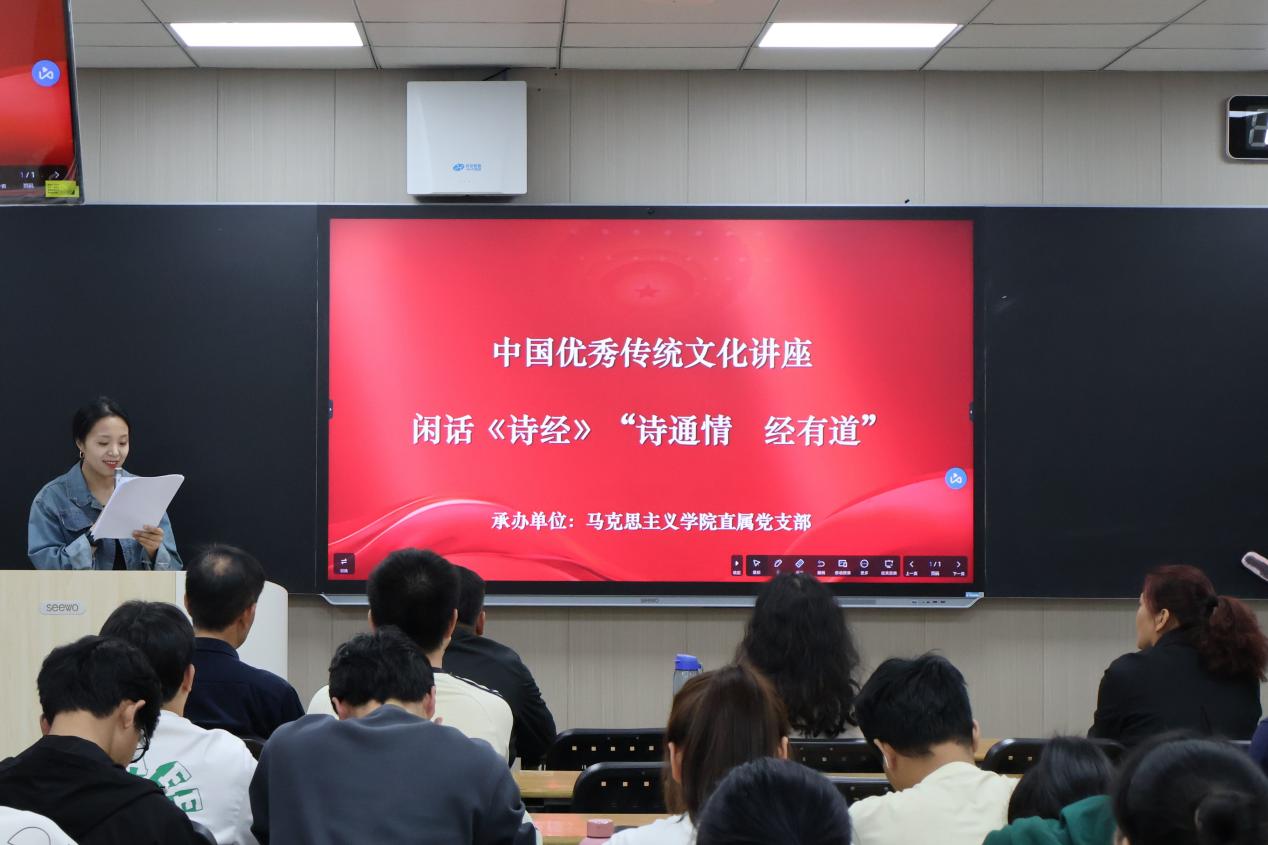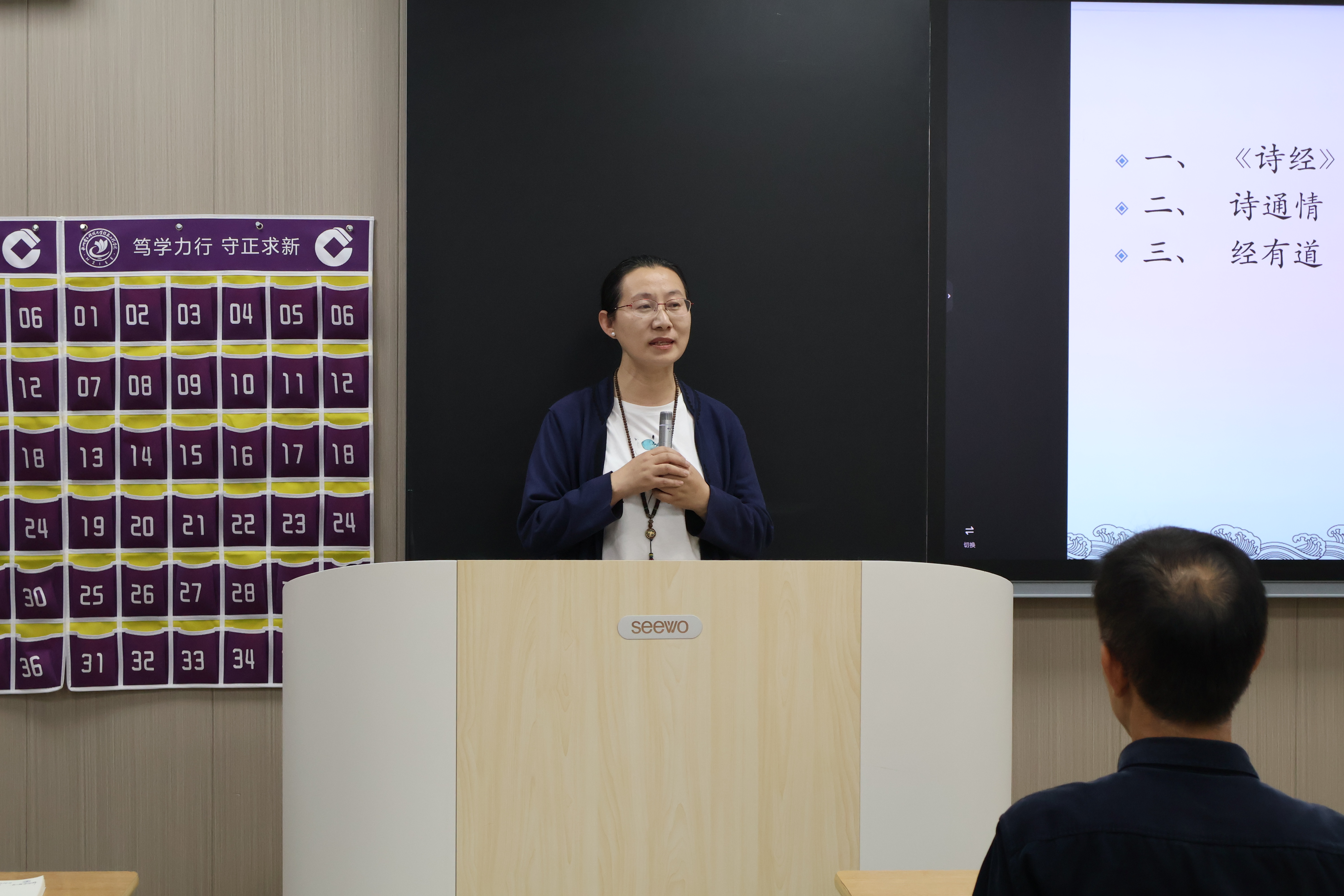 本次讲座以”闲话《诗经》——诗通情,经有道”为题,由马克思主义开元(中国)副教授张慧远老师主讲。孔子说:“不学诗,无以言”。意思就是不读《诗经》,便不懂如何说话。张老师表示《诗经》之美在其朴素、在其婉转、在其豪迈。关于为何读《诗经》?她分别从“为修养之用、为言辞之用、为从政之用、为教化之用”四个方面进行了阐述。