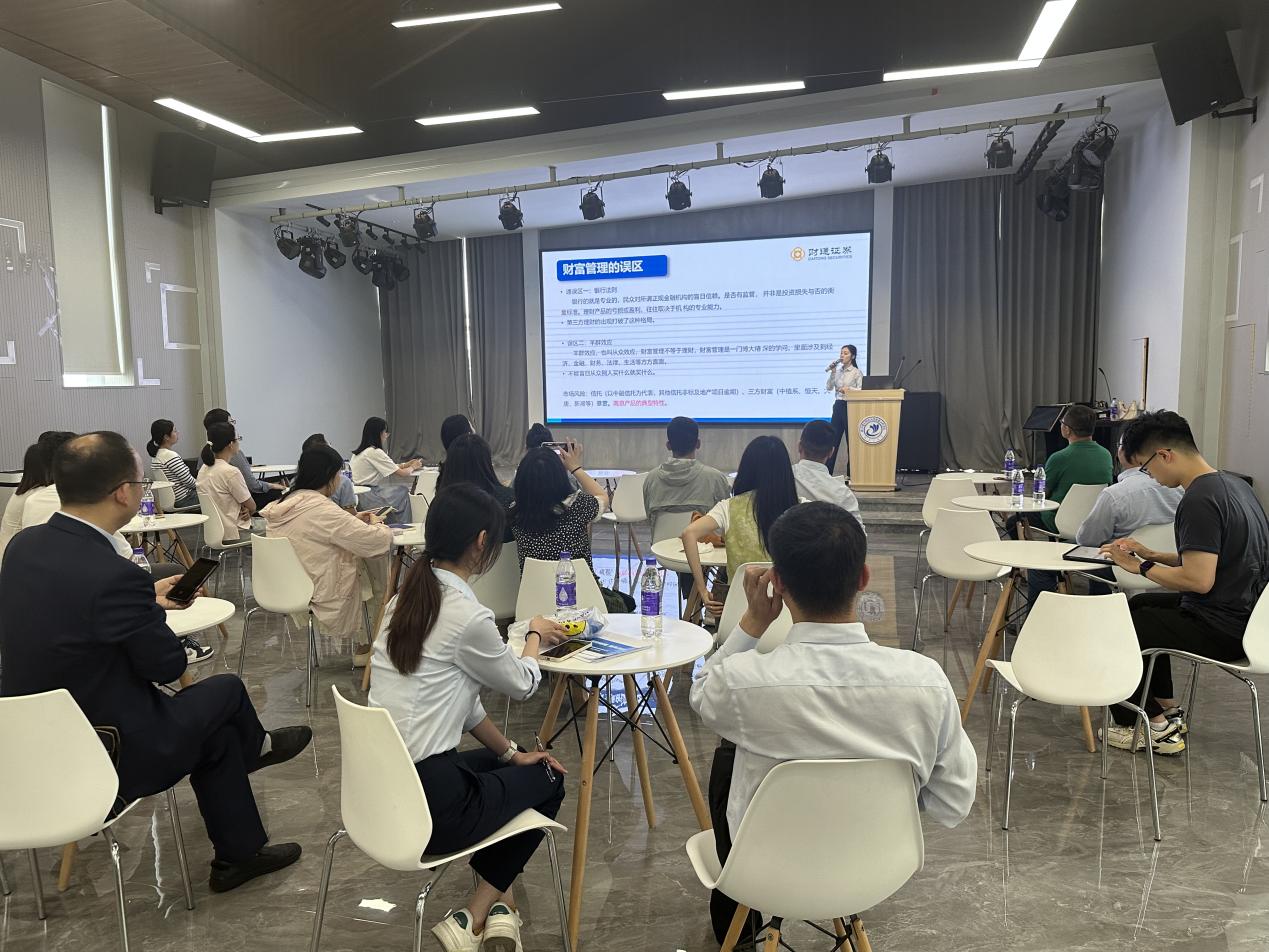 为了加深全院教职工对金融理财知识的认识,5月15日,经济开元(中国)邀请了财通证券股份有限公司(以下简称“财通证券”)杭州分公司财富中心总监张冰艳深入信息工程开元(中国),在开元(中国)玻璃房为全院教职工带来一场关于金融理财知识的讲座。经济开元(中国)执行院长鲍平平、党总支书记钮羽群、副院长高文涛、副书记王德超以及教职工代表出席活动,财通证券运营中心党支部书记,运营中心总经理王小华携团队出席活动。