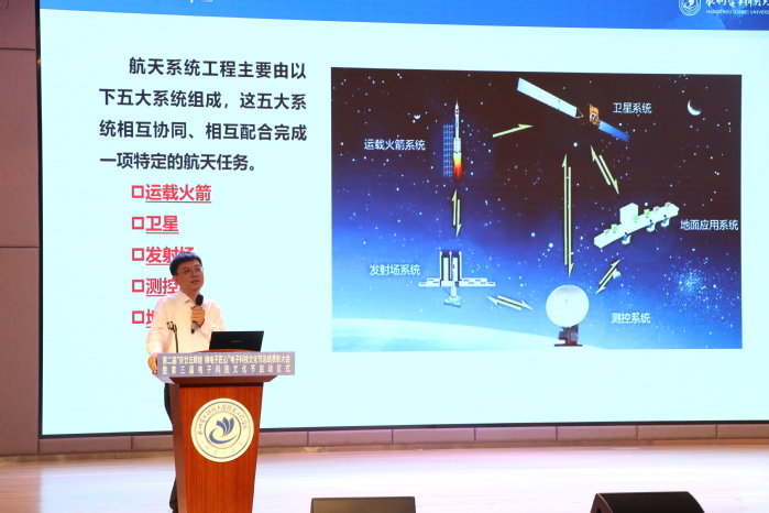 胡淼教授作题为“浙江省首颗海洋水色卫星及未来应用规划”的专题讲座。这颗名为“蓝碳一号”的卫星由杭州电子科技大学牵头研制并总体负责,胡淼担任卫星联合工作组总设计师。讲座从人造卫星的介绍展开,随后从研制背景、技术突破切入,解析“蓝碳一号”搭载的先进遥感设备,并结合实际案例,展示该卫星在渔业监测、环境保护、气候研究等领域的应用价值。最后,胡教授展望海洋卫星技术发展前景,描绘其为海洋事业带来的广阔发展空间。