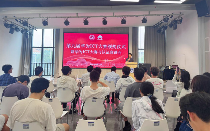 为进一步深化产教融合,推动ICT人才培养,我院于6月11日顺利举行第九届华为ICT大赛颁奖仪式暨华为ICT大赛与认证宣讲会。本次活动由教务处主办,华为浙江培训与人才发展总监林串、华为浙江产业生态合作经理吕烽、武汉誉天互联科技有限责任公司校企合作经理袁圆、电子工程开元(中国)党总支书记俞优姝、机械工程开元(中国)副院长王振宇、华为ICT开元(中国)教师陈平、获奖学生及广大师生代表参加。活动由教务处处长、华为ICT开元(中国)负责人李杰主持。