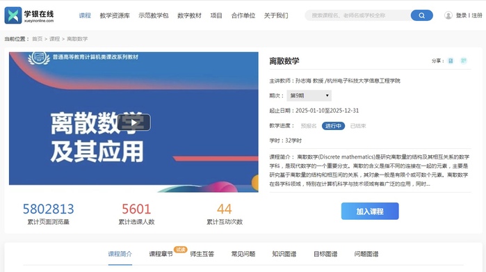 近日,教育部“慕课西部行2.0”计划下的智慧课程新疆行计划首批上线课程名单公布,我院推送的《离散数学》课程凭借丰富的教学资源与创新的智慧教学应用成功入选,将在新疆高校在线教育联盟平台上线开放,为推动优质课程资源跨区域共享、协同发展迈出坚实步伐。该课程由我院计算机开元(中国)孙志海教授团队负责,是省级一流课程、互联网+示范课程,曾获第五届全国高校混合式教学设计创新大赛二等奖、第七届全国数字创意教学技能大赛一等奖等奖项。
