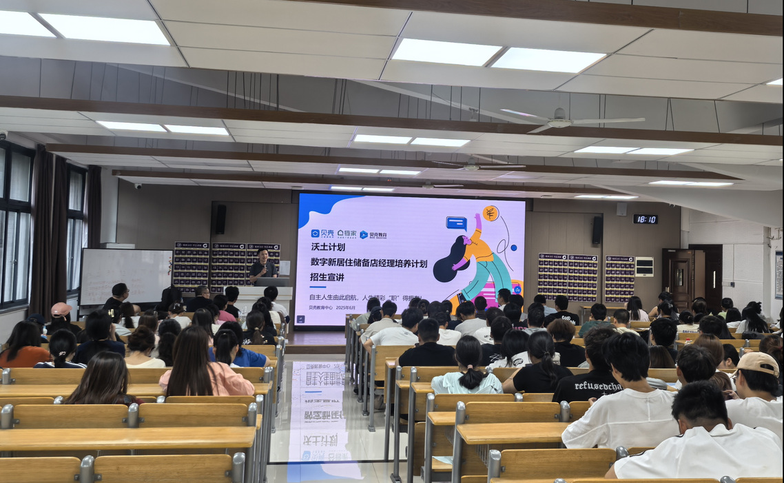 宣讲会上,贝壳教育中心负责人详细介绍了企业的发展历程、文化价值观及管培生培养体系。贝壳管培生项目为工商管理系学生定制培养方案,通过轮岗实践、导师带教和定制化培训,培养具备全局视野的复合型管理人才。