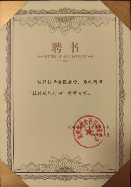 6月11日,杭州市2025“社科赋能行动”现场推进会暨专题培训会在淳安会议中心举行。我院院长辛金国受邀出席,并被杭州市社会科学界联合会聘为“杭州市‘社科赋能行动’特聘专家”。