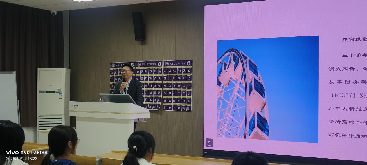 人类进入AI时代,财会专业大学生如何精准定位自身学业与职业发展?10月29日晚,特邀嘉宾物产环能副总王竹青教授为25级财会新生做了题为《CFO+?=CEO——AI时代财务人员职业发展规划分享》精彩报告。