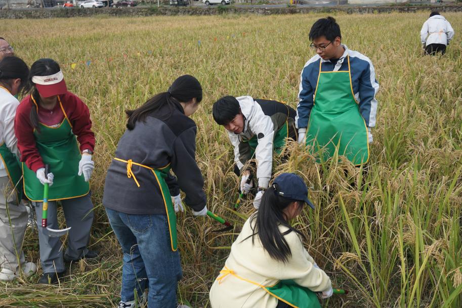 在农业技术人员的指导下,师生代表们手持镰刀,有序进入稻田体验水稻收割。弯腰、割稻,看似简单的动作,让同学们深刻体会到劳动的艰辛与收获的喜悦。明年即将迎来长征胜利90周年,本次稻田节以“稻”为纽带,既是传承长征精神中“艰苦奋斗、清正廉洁”优良作风的具体实践,也是落实高校劳育要求、培养学生“知行合一”匠心的创新举措。