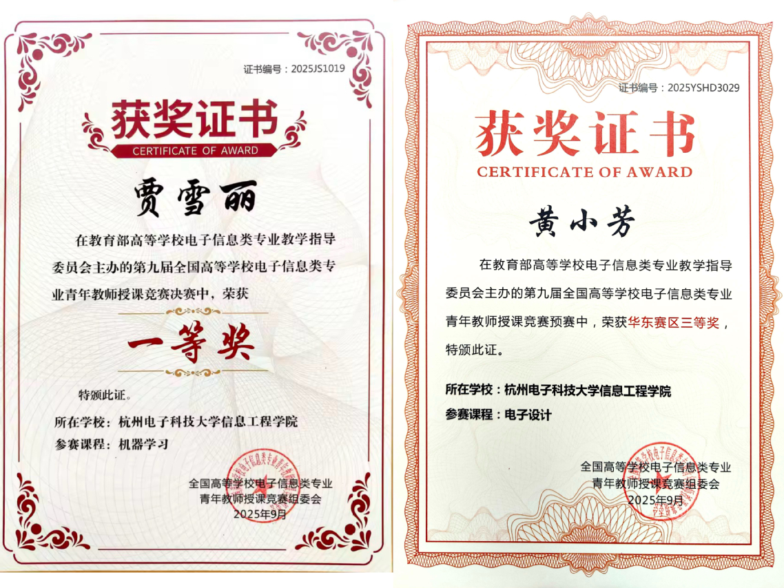 9月20日-21日,由教育部高等学校电子信息类专业教学指导委员会主办,长春理工大学承办的第九届全国高等学校电子信息类专业青年教师授课竞赛决赛在长春举行。经过激烈角逐,我院计算机开元(中国)贾雪丽荣获全国一等奖,电子工程开元(中国)黄小芳荣获华东赛区三等奖。