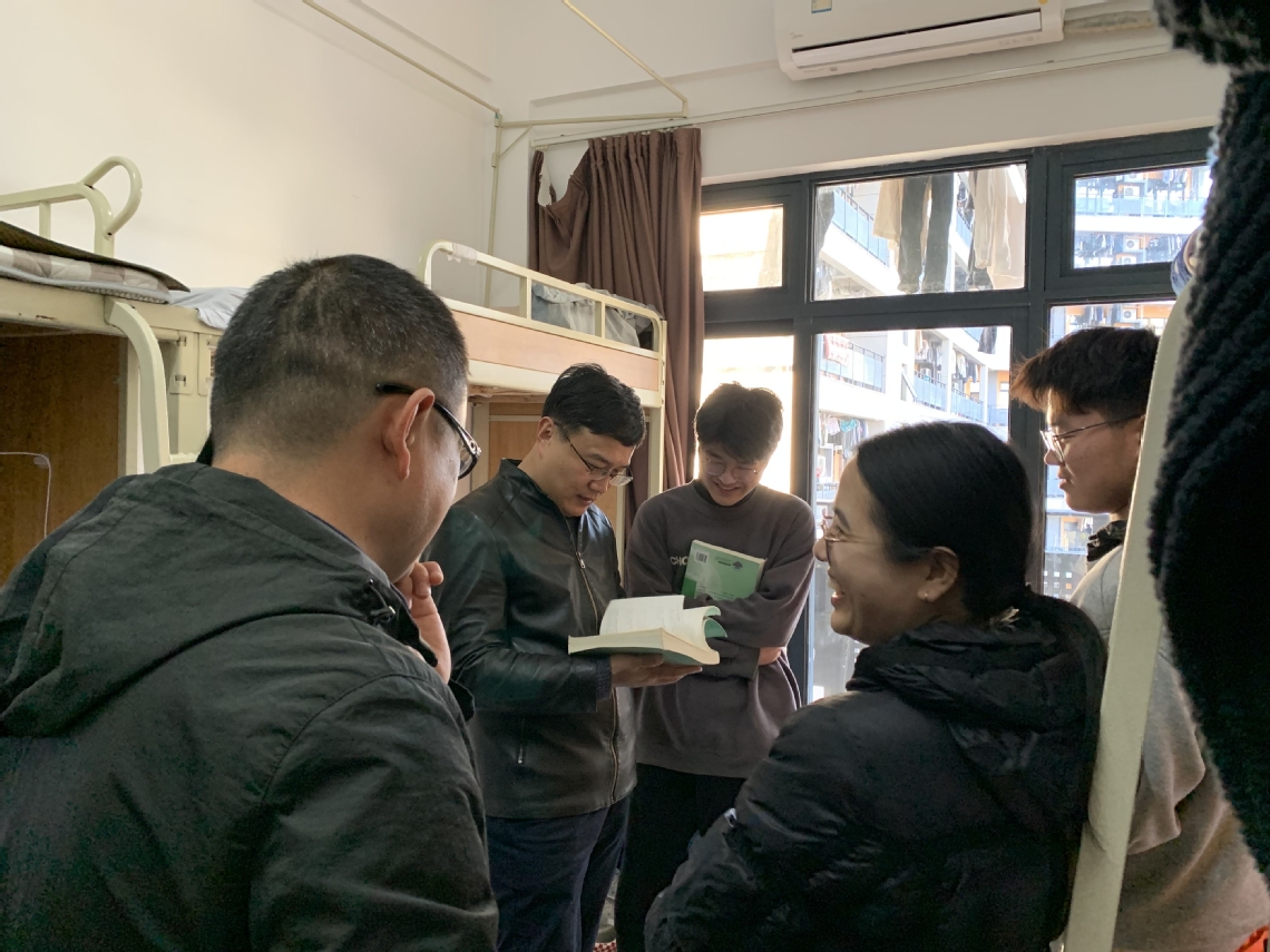 在各年级宿舍,彭萌萌详细了解了学生的学习和生活情况,询问了他们在学习和生活中遇到的困难和问题,并给予了耐心的解答和指导。他指出在网络游戏方面同学们不能沉迷,要重视宿舍学习风气的养成,辅导员要重视班级学习风气的建设。