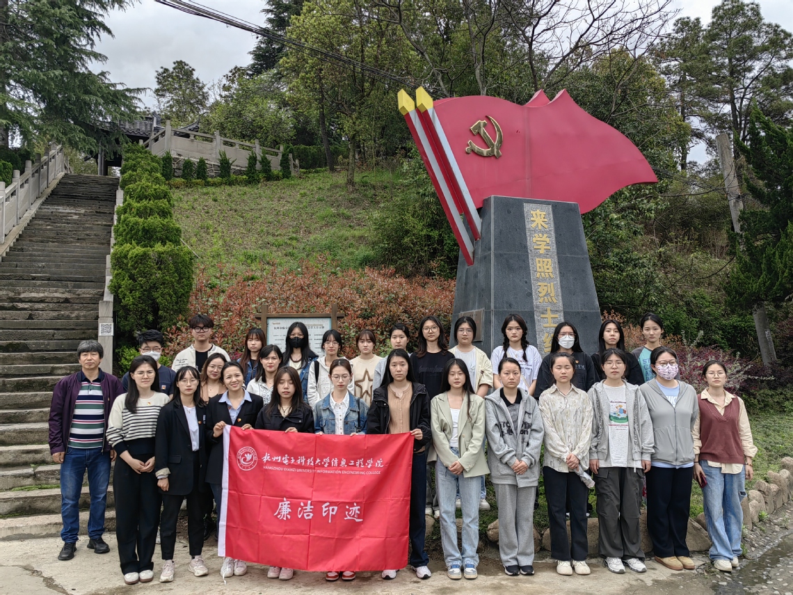 梨花风起正清明,追忆先烈致哀思。到达杭州市临安区青山湖街道庆北村来学照来学照烈士纪念碑,由马克思主义开元(中国)马丹老师为同学们讲述了来学照英烈的生平事迹,让同学们学习和了解了革命先烈事迹,通过学习先烈英勇抗争的事例,大家深感先烈在极端艰苦的环境中始终保持政治坚定和清正廉洁的高尚品质,对党风廉政建设起到了积极的引领作用。