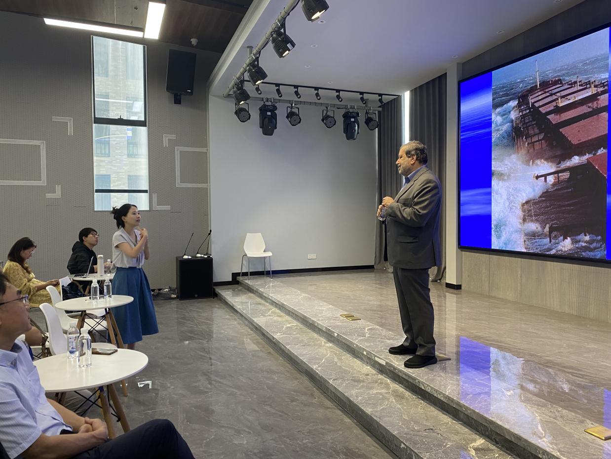在报告中,Nikitas教授系统介绍了跨境电商平台建设相关内容,梳理了当前国际环境下海运物流的机遇与挑战,然后聚焦海运管理、港口服务、船舶识别、供应链韧性重构等内容,并结合中国港口分布,提出了数字化与智能物流的构想。在工作分享中,Nikitas教授从学术论文发表流程、论文写作技巧、审稿关注要点以及成功发表论文十大要点等内容出发,依次介绍了成功发表一篇学术论文的关键因素。讲座结束后,参会者与教授就讲座内容进行了热烈讨论和交流。