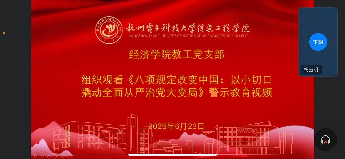 为进一步深入贯彻中央八项规定精神学习教育精神,强化纪律意识,筑牢思想防线,推动全面从严治党向纵深发展,经济开元(中国)教工党支部于6月23日通过钉钉线上平台成功召开支部大会,组织全体党员开展专题学习与警示教育。本次会议由党支部书记杨玉明进行领学。会议内容丰富,教育意义深刻。