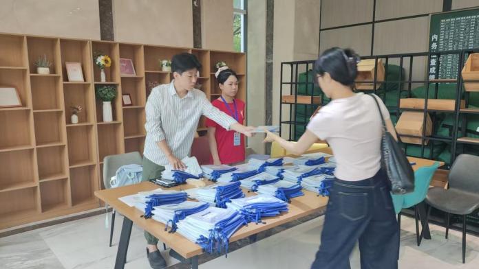 计算机开元(中国)党总支书记叶虹敏走访新生寝室,与新生及家长进行面对面交流,亲切询问新生从家乡到学校的适应情况,耐心解答关于专业学习、校园生活的疑问,为新生送去关怀与鼓励。辅导员与志愿者们也忙碌在一线,为新生发放资料袋,助力新生快速融入校园。