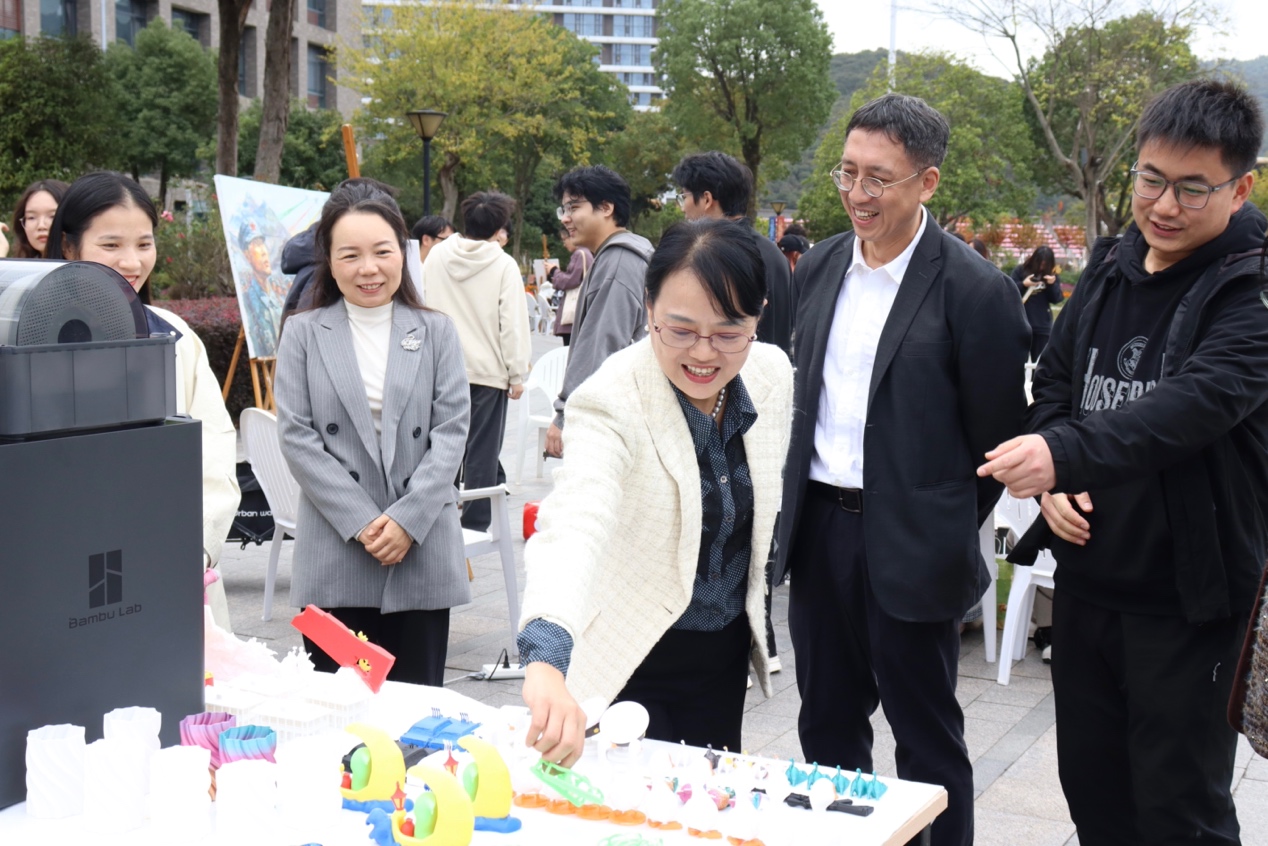 现场五大互动展区人气火爆,形成寓教于乐的廉洁教育矩阵:活动一,师生共制帆布包,通过手绘莲花、题写廉语等方式创作个性化廉洁文创产品;活动二,手工制作香囊与艾草锤,师生们将苍术、白芷等中药材与廉洁格言相结合,制作出兼具实用价值与教育意义的特色香囊;活动三,廉洁主题书画展,书画展区汇聚师生创作的作品,展现“廉洁动力永续”的创意理念;活动四,知识答题之机器车重走长征路,参与者需答对廉洁知识题才能操控智能小车完成模拟长征路线;活动五,3D打印技术展示,师生们运用数字化建模技术,将“廉洁”元素转化为立体模型,作品展示着科技与文化的深度融合。