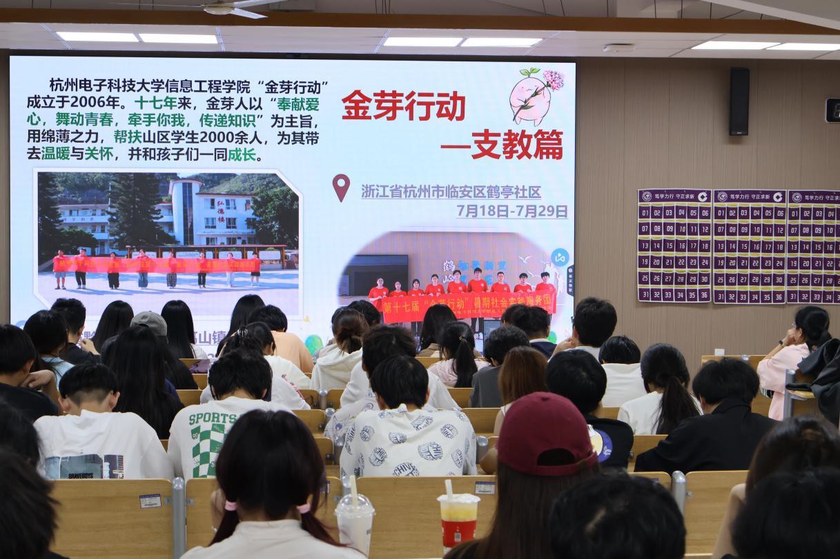 活动简介:以“奉献爱心,舞动青春,牵手你我,传递知识”为主旨,组织大学生前往贫困山区学校进行支教活动,“金芽行动”特此召集数位大学生以志愿者的身份为小朋友们带来欢乐与知识,不论时间的长短与路程的艰辛,尽可能地弥补因地域问题带来的教育短板。“金芽行动”实践服务团成立于 2006 年,至今已走过 18 年历程建立社会实践基地5 个,遍布贵州、衢州、丽水、台州、杭州等地,与 8 所学校签下暑期支教基地协议,帮扶山区学生 2000 余人,曾获“浙江省社会实践活动省级团队”称号。“金芽行动”更是 在多个平台发布相关报道,为贫困山区教育吸引更多社会关 注,同时面向社会收集急需教育资源的贫困地区信息。“金 芽”第十八年,以“十八载金芽,初心如一;数百里征程, 无问东西”为主题,出发台州温岭和浙江杭州临安鹤亭社区, 对小朋友们进行爱心支教。通过开设一系列素质拓展性课程, 寓教于乐,使孩子健康成长。