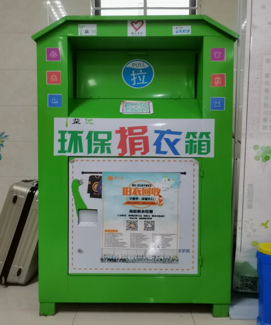 活动简介:青年志愿者协会联合杭州高校救衣联盟在每个寝室楼楼下设立一个回收箱,对同学们日常的旧衣进行回收,为同学们不需要的闲置衣物找到了归属,更是对有需之 人献出一份关注、一份真情。