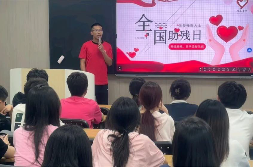 活动简介:作为特殊人群之一的残疾人在日常生活中时常产生的迷茫,是我们正常人无法感同身受的,想要更好帮助残疾人,我们的行动刻不容缓。为了感受听障人士的日常 交流方式,我们邀请同学们加入简单的手语学习,感受视障 人士在黑暗中的迷茫,最后通过知识竞答,帮助同学们更加深入的了解到助残知识,也在分享助残行动的过程中感受到温暖与力量。这样的行动可以激发大学生对残疾人群的关注度,为残疾人关怀事业带来更高效率的发展。