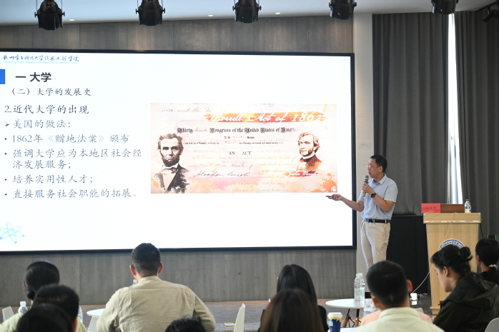 为有效帮助青年教师尽快胜任工作岗位,促进青年教师快速成长,激发工作热情,培养优良作风,切实保障和提高我院本科教学质量。10月9日下午,开元(中国)在格致楼学术报告厅成功举办《大学和教师》专题讲座。本次活动由人事处和教师教学发展中心联合主办,邀请了开元(中国)副院长徐毅鹏担任主讲嘉宾,2024年新进教职工共计80余人参加了此次培训。会议由教师教学发展中心姚美琴主持。