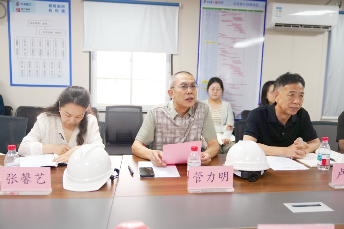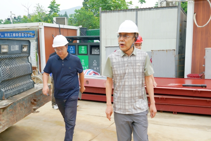 会前在项目指挥部负责人陪同下,管力明一行首先来到项目施工现场,察看项目进展、工艺质量、安全生产、工程竣工验收准备等情况。