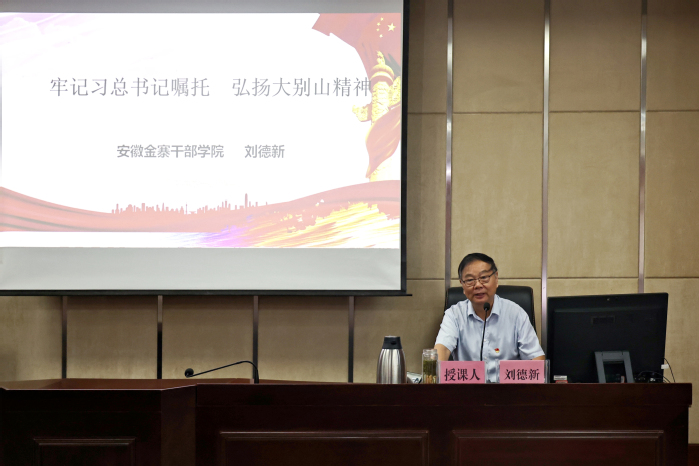 开班仪式结束后,六安市政协原副主席刘德新分享了题为《牢记总书记嘱托•弘扬大别山精神》的主题党课。党课围绕“大别山是中国革命的重要策源地、人民军队的重要发源地”“大别山精神是我们党的宝贵精神财富”“不忘初心、牢记使命,把红色江山世世代代传下去”等3个方面展开,使全体学员深刻感受到金寨人民以大无畏的牺牲精神,为中国革命事业建立了彪炳史册的功勋。