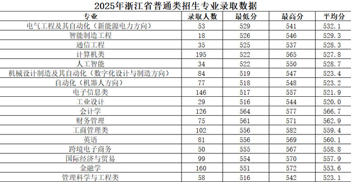浙江省普通类计划招生1422人,实际录取1422人。我院所有专业(类)均在一段一次性完成招生计划,普通类不限选考科目专业(类)最高分582分,最低分551分,投档分高一段线61分。仅限物理专业最高分542分,投档分516分,投档分高一段线26分;物化组专业最高分565分,投档分516分,投档分高一段线26分。