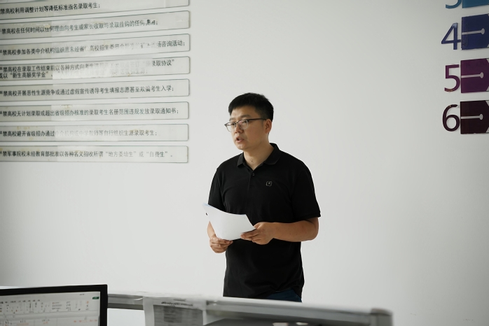 纪检监察审计办公室主任臧伟坡着重强调了录取阅档环节的工作纪律要求,明确了招生纪律红线与行为规范;招生就业办公室主任李亭则围绕阅档流程和材料核查,细致说明了具体注意事项,为阅档工作提供了操作指引。