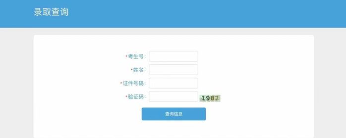 进入录取查询页面后,输入考生号、姓名、身份证号和验证码,即可查询。
