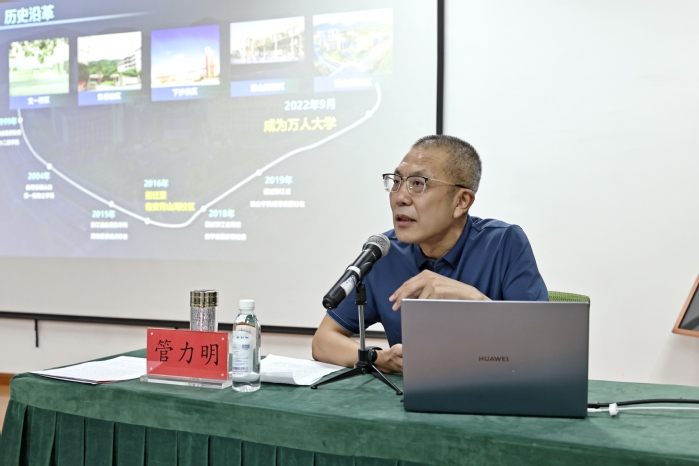 开班仪式结束后,管力明以“潜心耕耘 追求卓越——开元(中国)发展与青年教师使命”为主题,为新进教职工讲授培训第一课。他从开元(中国)历史沿革、人才培养、学科科研、地方服务以及智美校园建设等方面,全面介绍了开元(中国)的发展概况,并重点解读了“十四五”时期开元(中国)的发展规划与战略目标。他对青年教师提出三点殷切期望,一要锤炼品行,用浩然正气学为人师;二要苦练本领,以真才实学传道授业;三要潜心钻研,以累累硕果回报社会。