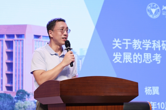 杨翼作“教学科研高质量发展”主题分享。他立足时代背景,系统剖析了第四次工业革命对教育科研范式的深远影响,并阐释了国家高水平科技自立自强战略部署对高校及科研机构提出的新要求。杨翼还详细梳理了国家相关方针政策与地方配套举措,重点强调教育、科技、人才“三位一体”发展的重要意义。