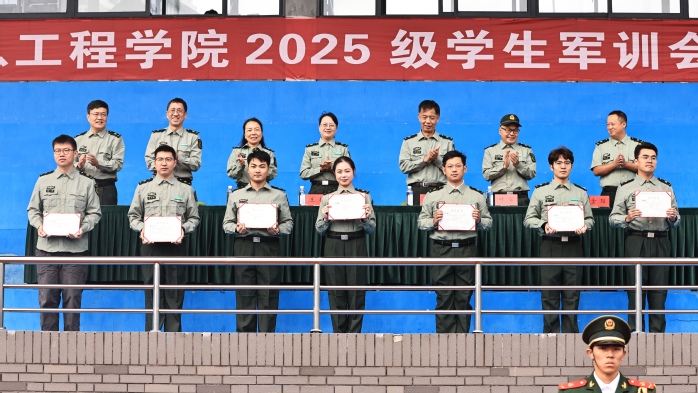 在承训教官的悉心指导下,全体同学刻苦训练、奋勇拼搏,圆满完成了各项军训任务,取得了扎实成效,并涌现出一大批先进个人与优秀集体。徐毅鹏宣读嘉奖令,对2025级本科学生军训中表现突出的先进个人和集体予以表彰。