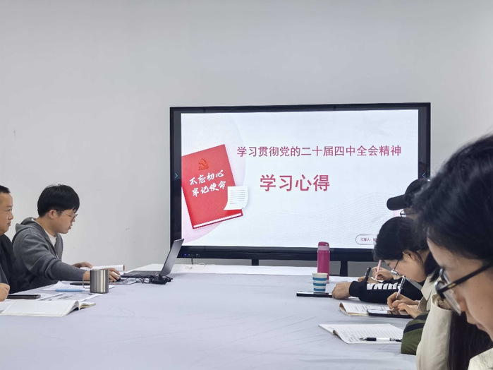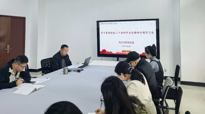 为深刻领会、准确把握党的二十届四中全会核心要义与精神实质,10月31日上午9时,我院机关第四党支部在格致楼一楼会议室召开全体会议,专题学习党的二十届四中全会精神。会议由支部书记金阳主持,支部党员参加。