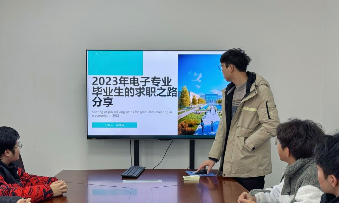 2023年12月23日,电子信息专业的优秀毕业生吴雄涛回访母校,向学弟学妹们分享了自己的求职经验。