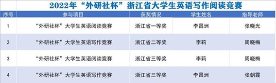 英语专业学生在2022“外研社•国才杯”全国英语、阅读写作大赛浙江赛区决赛中斩获佳绩
